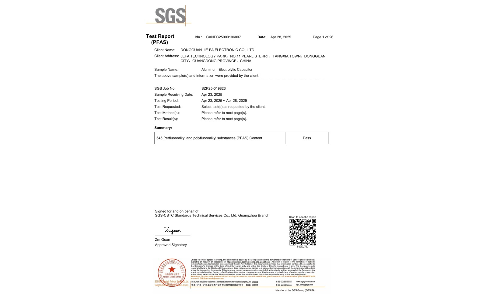 环保测试报告 PFAS CANEC25009106005